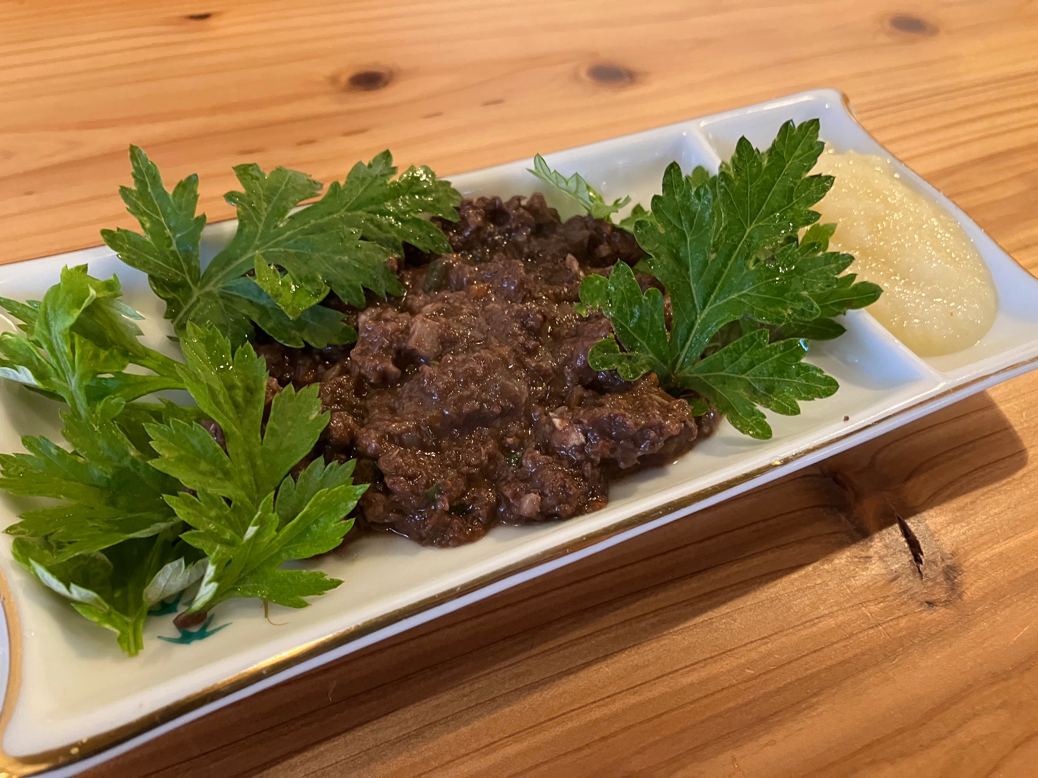 やぎの血と内臓を炒めた、やぎ100%の濃厚郷土料理。